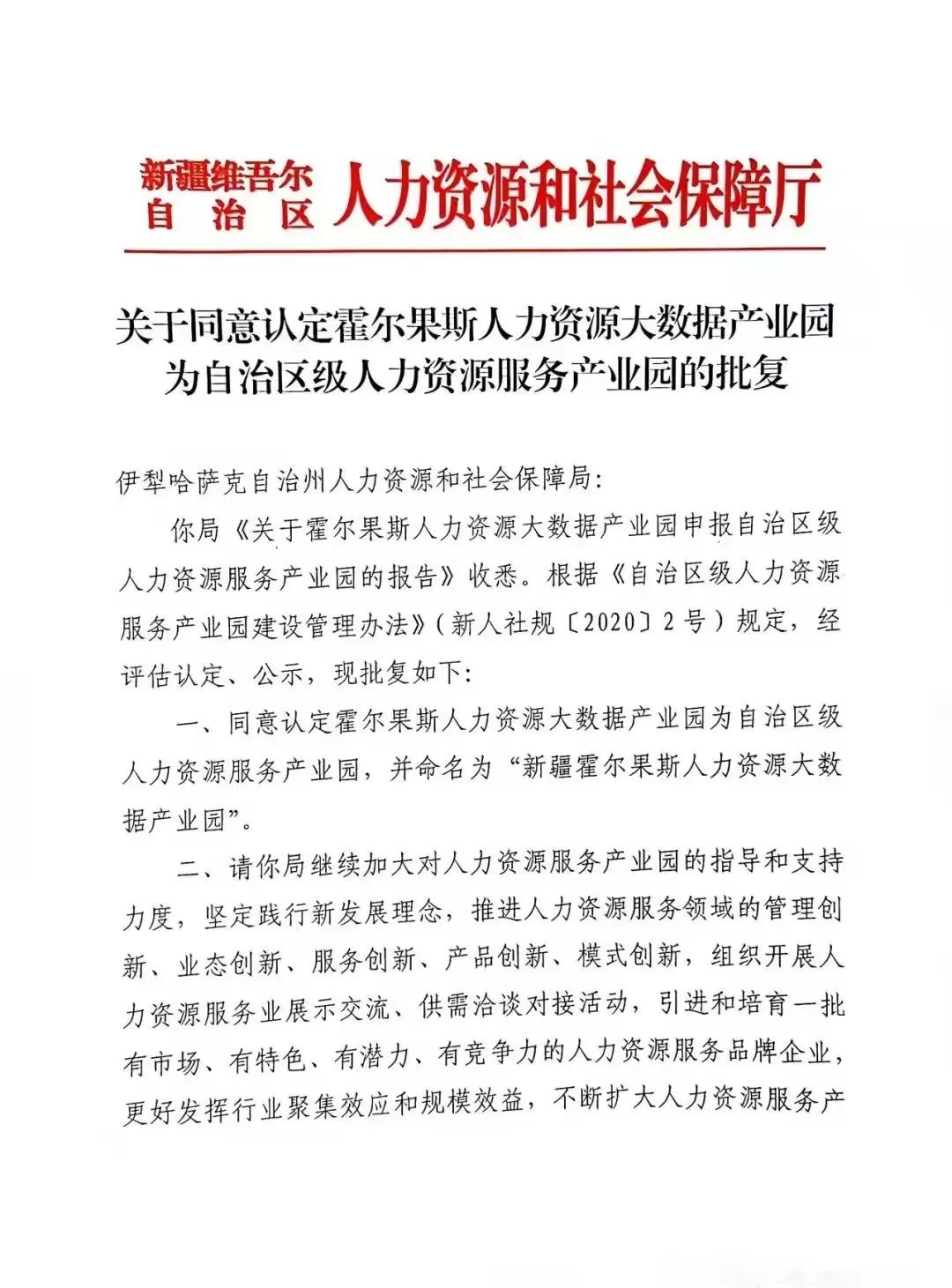 霍尔果斯人力资源大数据产业园成功获批自治区级人力资源服务产业园