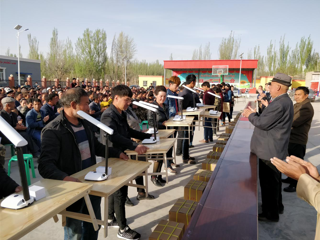 “百得有爱 助学圆梦”—江苏百得集团爱心捐赠的百套桌子、百盏护眼灯等大批爱心物资,到达新疆阿克陶镇的其克尔铁热克村!