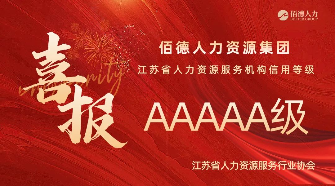 佰德集团荣获2022年度江苏省人力资源服务机构5A级信用等级